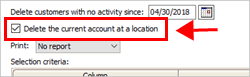 Use this option to delete the last account at a location. This option will leave a location that is not tied to an owner.
