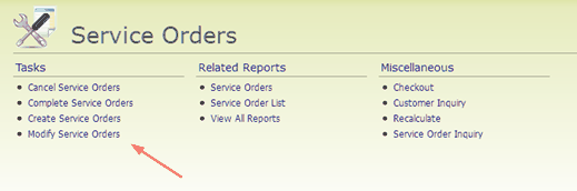 When you open the Service Orders menu (Utility Management > Service Orders), you'll see these tasks: Complete Service Orders, and Create Service Orders.