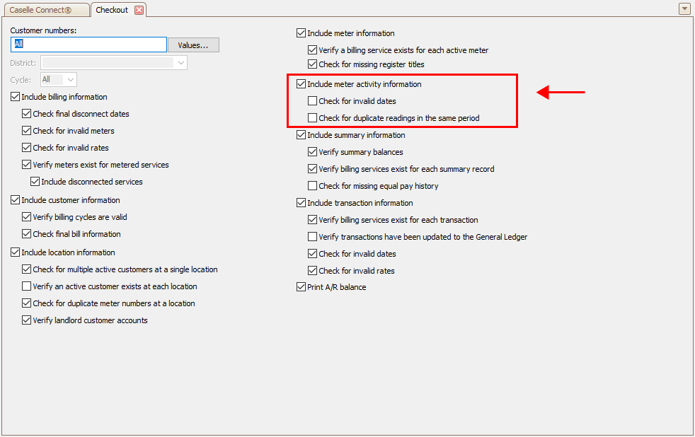 Including meter information will also check for duplicate route/sequence information and duplicate electronic meter reading IDs.