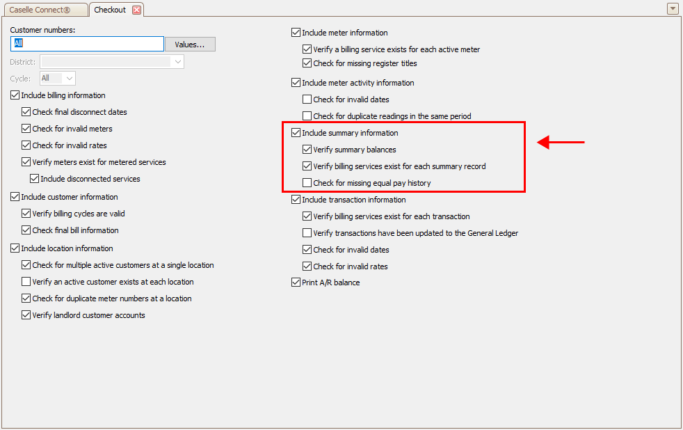 This section checks the summary balance for each customer. The summary balance includes a service balance and the prior period service balance.