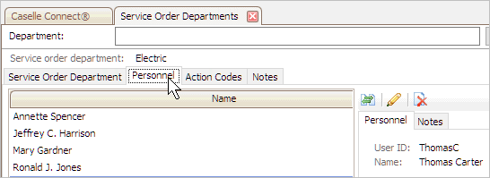 Use the options on the Personnel tab to select the users who will work on service orders that are assigned to the current department.
